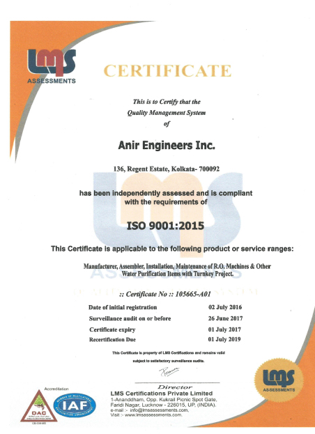 We are please to introduce ourselves as ANIR GROUP OF COMPANIES, established in the year 1985; we have only developed since then. Our journey started with a one room flat, now we own proper office space with numerous helping hands ensuring the fulfillment of our dream. We are now a group of companies by the name of ANIR GROUPS which Includes Anir Engineers Inc., Ari Pavers Pvt. Ltd., and Anir Water Machinery Pvt. Ltd. & we are ISO 9001:2008 and NSIC certified. We hope to include more names in the group in near future. Anir Engineers Inc. is the considered mother concern.